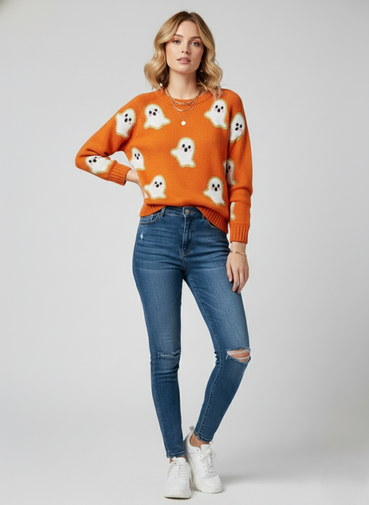 SAVE 48%Halloween Ghost Cotton Sweatshirt