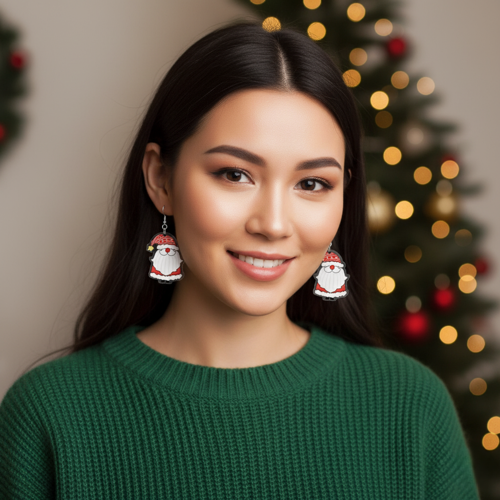 Adorable Santa Motif – Features a cheerful Santa Claus charm that brings joyful holiday spirit to your look.