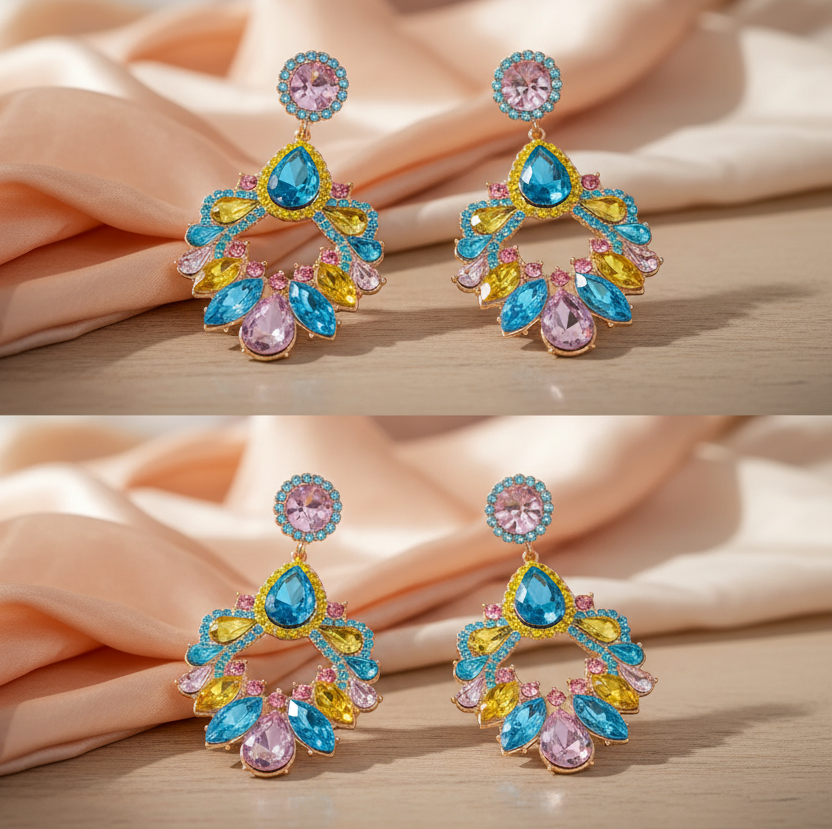 Adorned with high-quality rhinestones, these earrings add a radiant touch to your style, catching the light beautifully with every movement.