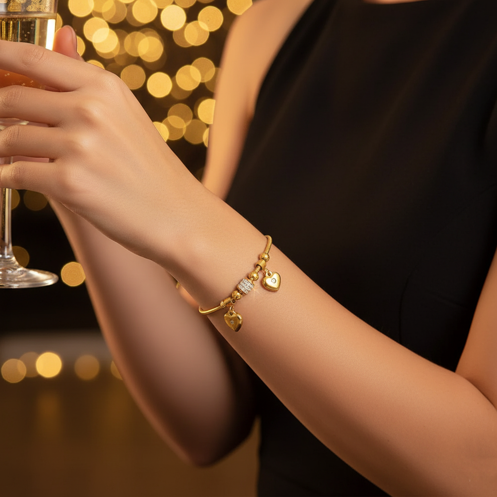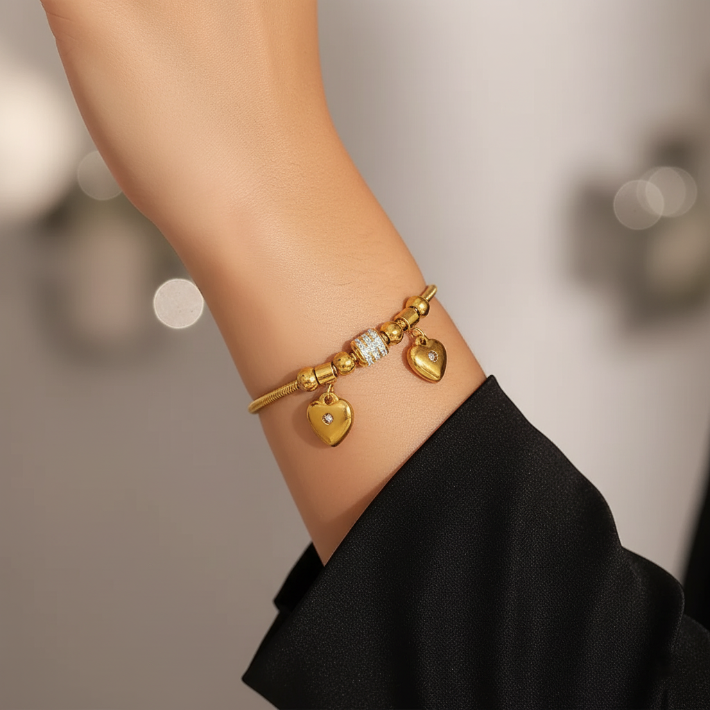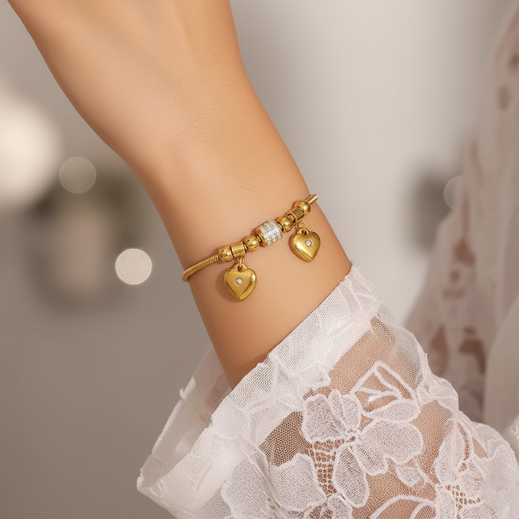 Designed with a radiant rhinestone heart charm, this bracelet captures the essence of love and sophistication.