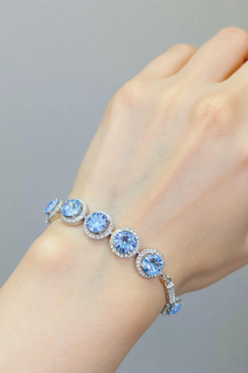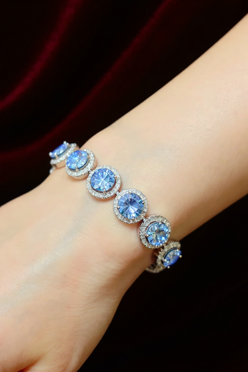 Crafted with premium platinum-plated 925 sterling silver, this bracelet showcases a luxurious 5-carat moissanite centerpiece, promising timeless sparkle and sophisticated style.