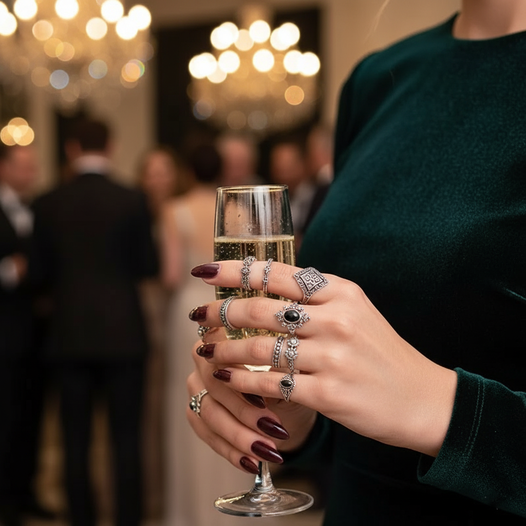 Crafted from high-quality alloy with carefully set synthetic stones, these rings offer a bold, elegant look while remaining lightweight and comfortable.