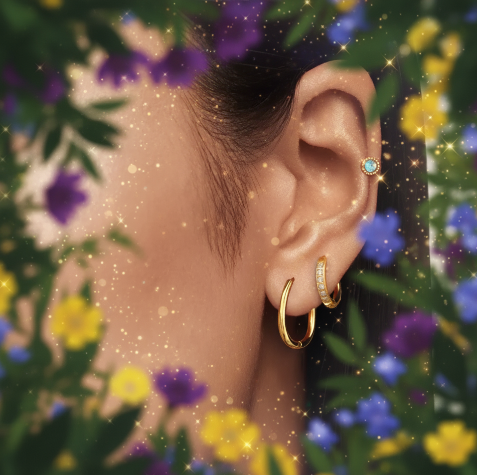 - Modern Minimalism: A sleek blend of turquoise stud, classic hoops, and bar studs creates a stylish yet timeless look.