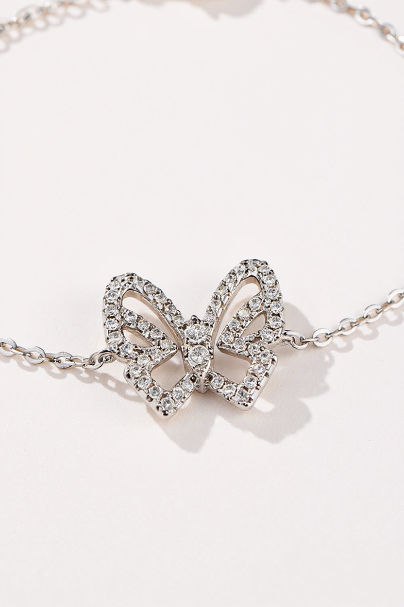 Crafted with refined detail, this butterfly-shaped bracelet features shimmering moissanite set in platinum-plated 925 silver—subtle yet captivating.