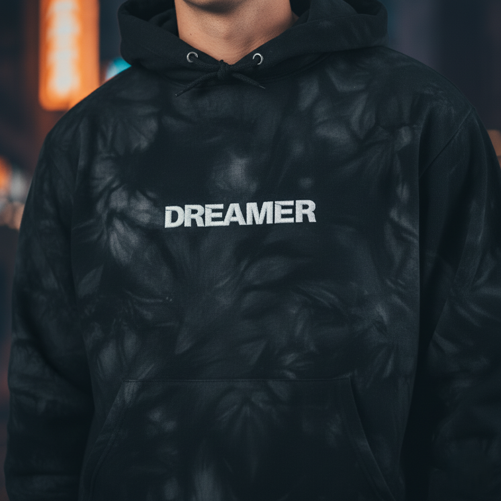 - “DREAMER” embroidery adds inspiration and style to your look.
