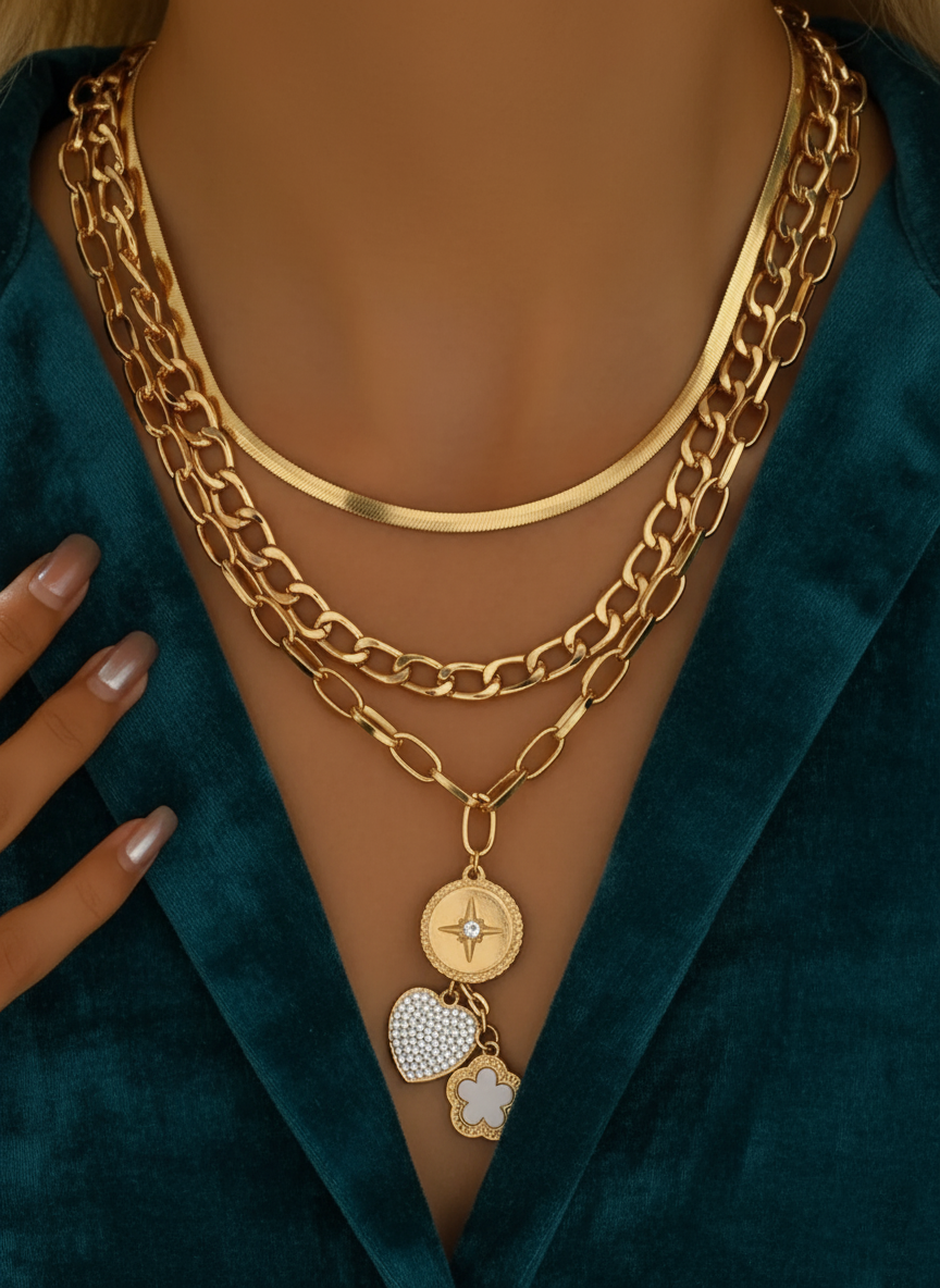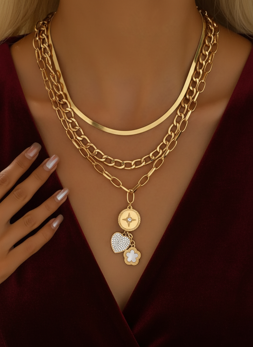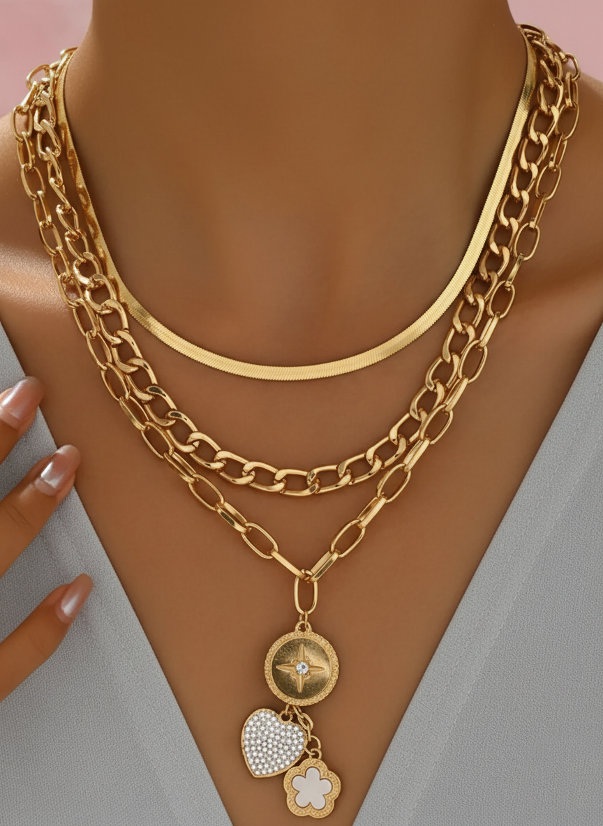 This Stainless Steel Layered Necklace features a sleek multi-chain design that adds instant elegance to any look. Its minimalist yet trendy style makes it a versatile accessory for both casual and formal outfits.